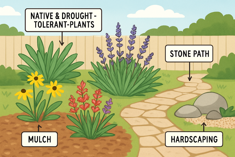 - Hardscaping and smart plant grouping lower maintenance needs.